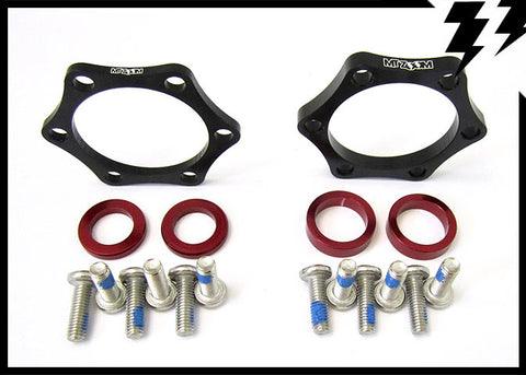 MT ZOOM centrelock/splined boost thru axle hub adaptor kit for boost spaced frames/forks. Use standard axle/hub spaced centrelock/splined hub wheels in a boost frame/fork with these adaptors. The wheel is then mounted and secured with your boost axle.